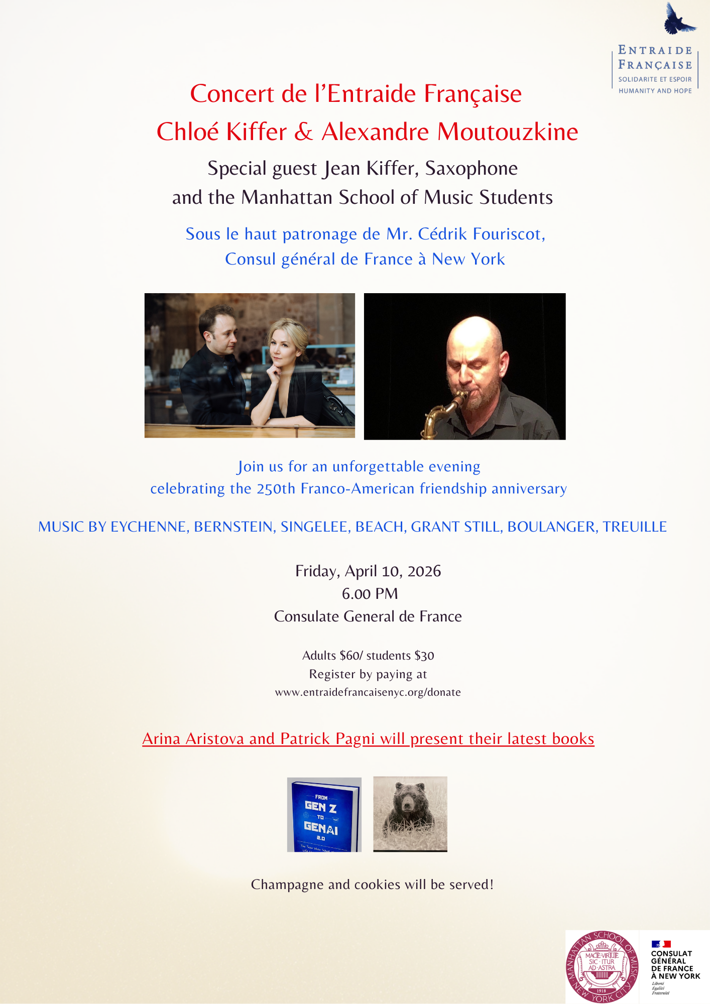 About the Event: Organized by Entraide Française with the support of the Consulate General of France in New York, this concert is part of our ongoing mission to support French-American families in need and to promote cultural exchange through music.